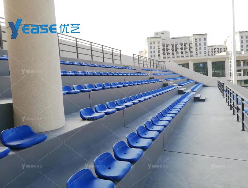 坚固耐用的钢结构看台系统,满足户外场馆长期使用与高承载要求。