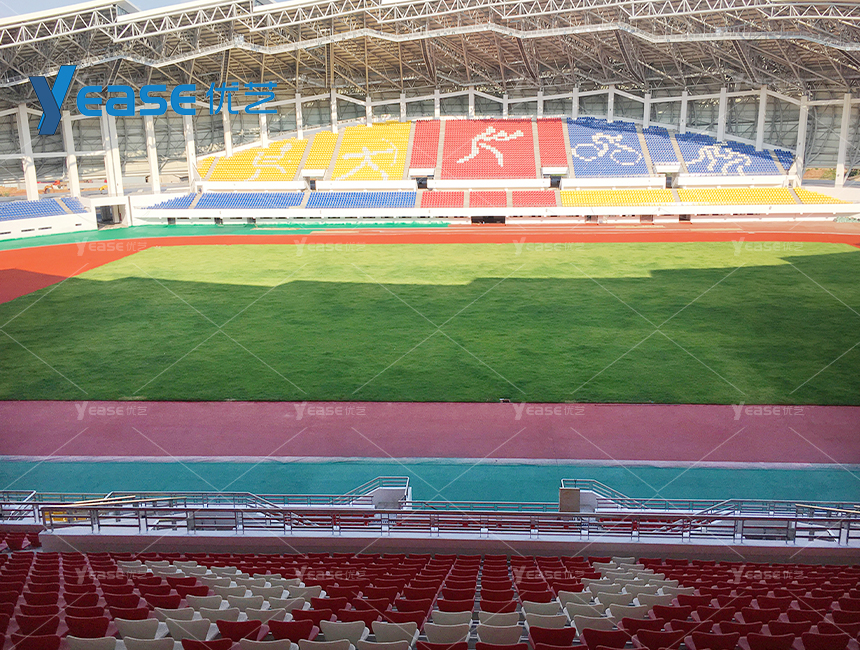 坚固耐用的钢结构看台系统,满足户外场馆长期使用与高承载要求。