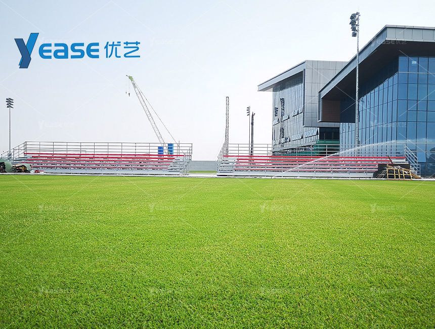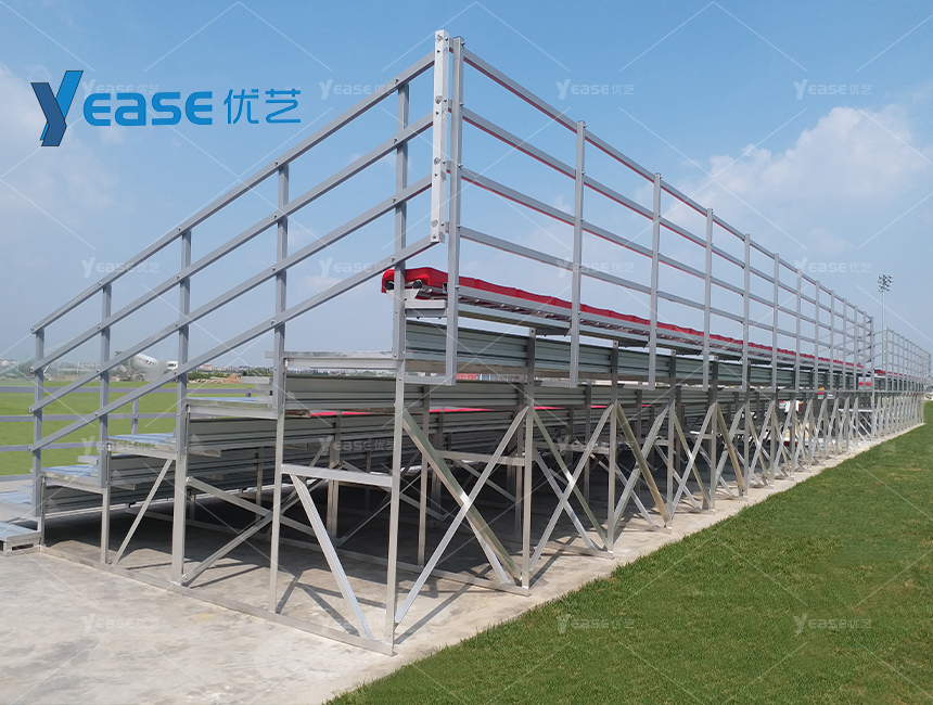 坚固耐用的钢结构看台系统,满足户外场馆长期使用与高承载要求。