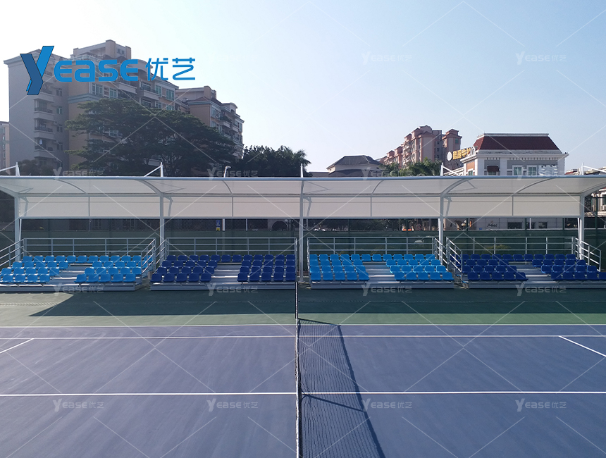 坚固耐用的钢结构看台系统,满足户外场馆长期使用与高承载要求。