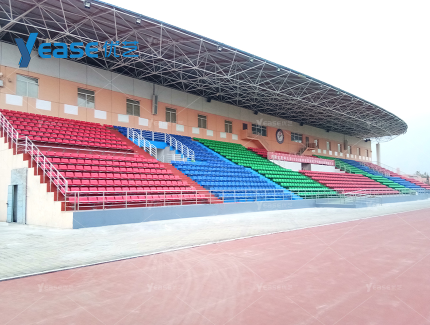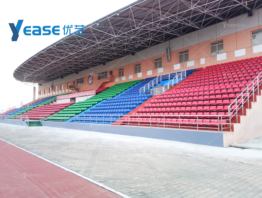 坚固耐用的钢结构看台系统,满足户外场馆长期使用与高承载要求。