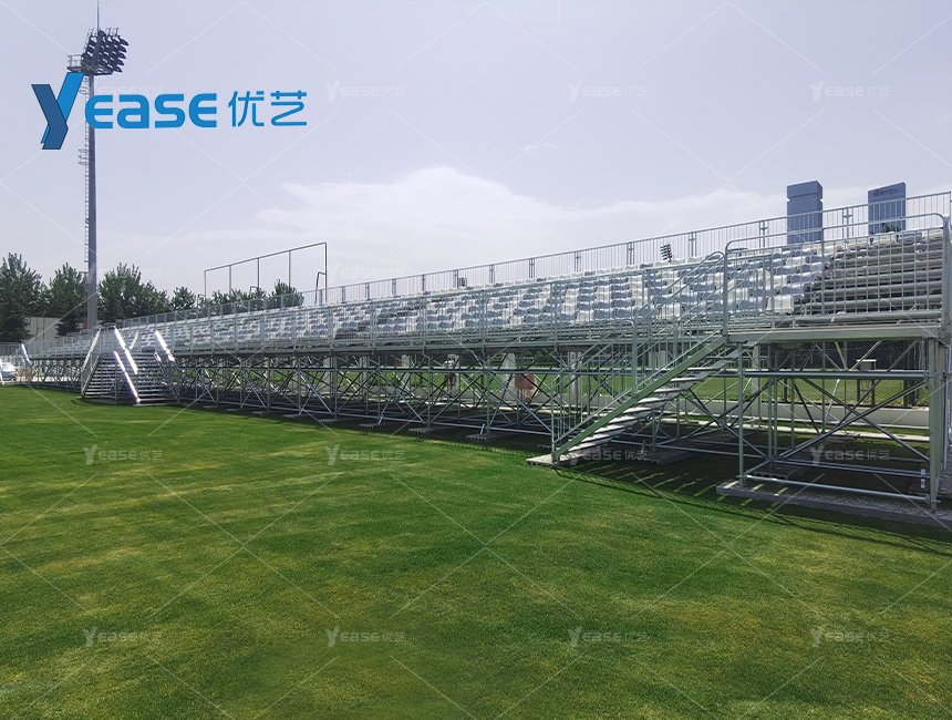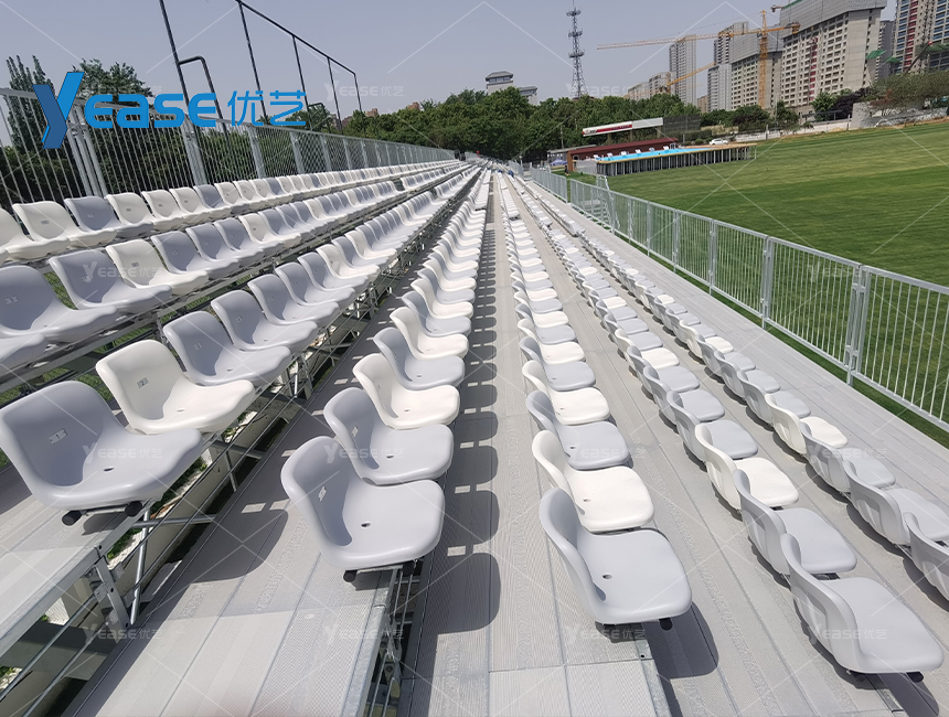 坚固耐用的钢结构看台系统,满足户外场馆长期使用与高承载要求。