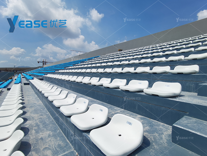 坚固耐用的钢结构看台系统,满足户外场馆长期使用与高承载要求。
