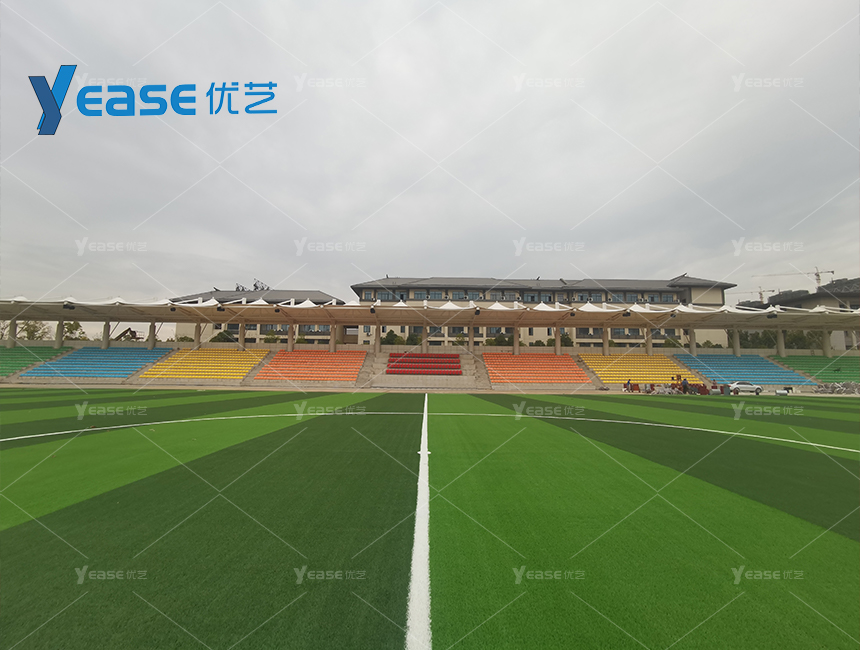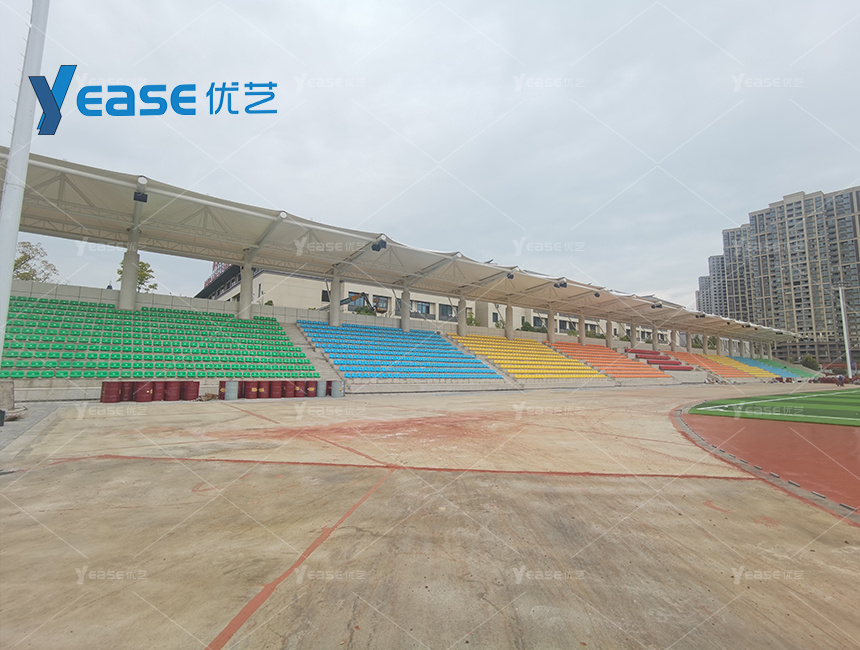 坚固耐用的钢结构看台系统,满足户外场馆长期使用与高承载要求。