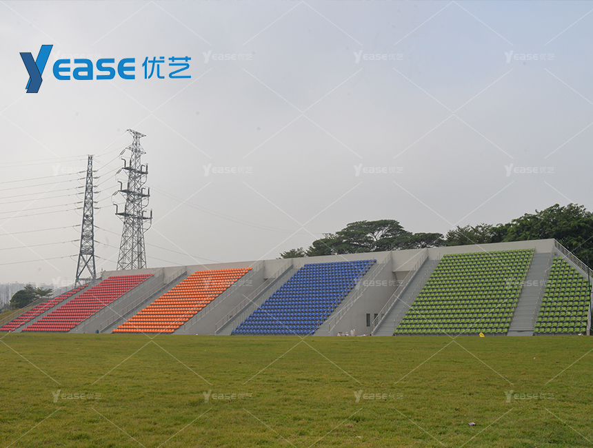 坚固耐用的钢结构看台系统,满足户外场馆长期使用与高承载要求。