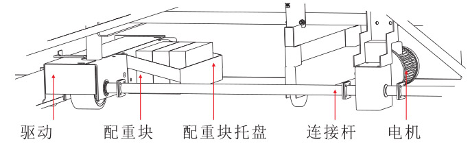 A.如果看台有行走过程中卡住、走偏,检查排锁、配重块(配重块托盘,见图3-4)。