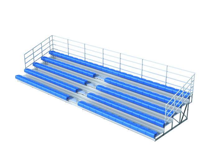 产品特点:主要结构(一体支架)以角铝组焊成型,其余部件均采用铝材加工而成,看台在满足结构和使用安全的前提下最大限度减轻了看台整体的重量,防腐性能优越,是架空层场地及户外场地的首选。